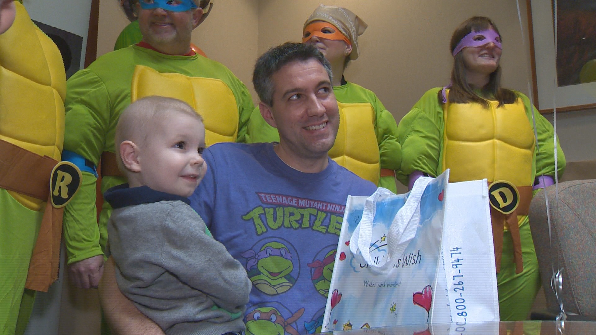 The foundation threw Cole a surprise party in Dartmouth, N.S., to tell him he was going to Disney World and due to his love of the Teenage Mutant Ninja Turtles everything at his party was ninja turtle themed – from the balloons, down to the cake. He even had a special visit from the Turtles themselves to present Cole with gifts.