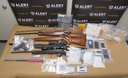 A search of homes in North Lethbridge and Coaldale on March 15 netted $30,000 worth of drugs, six rifles and a handgun.