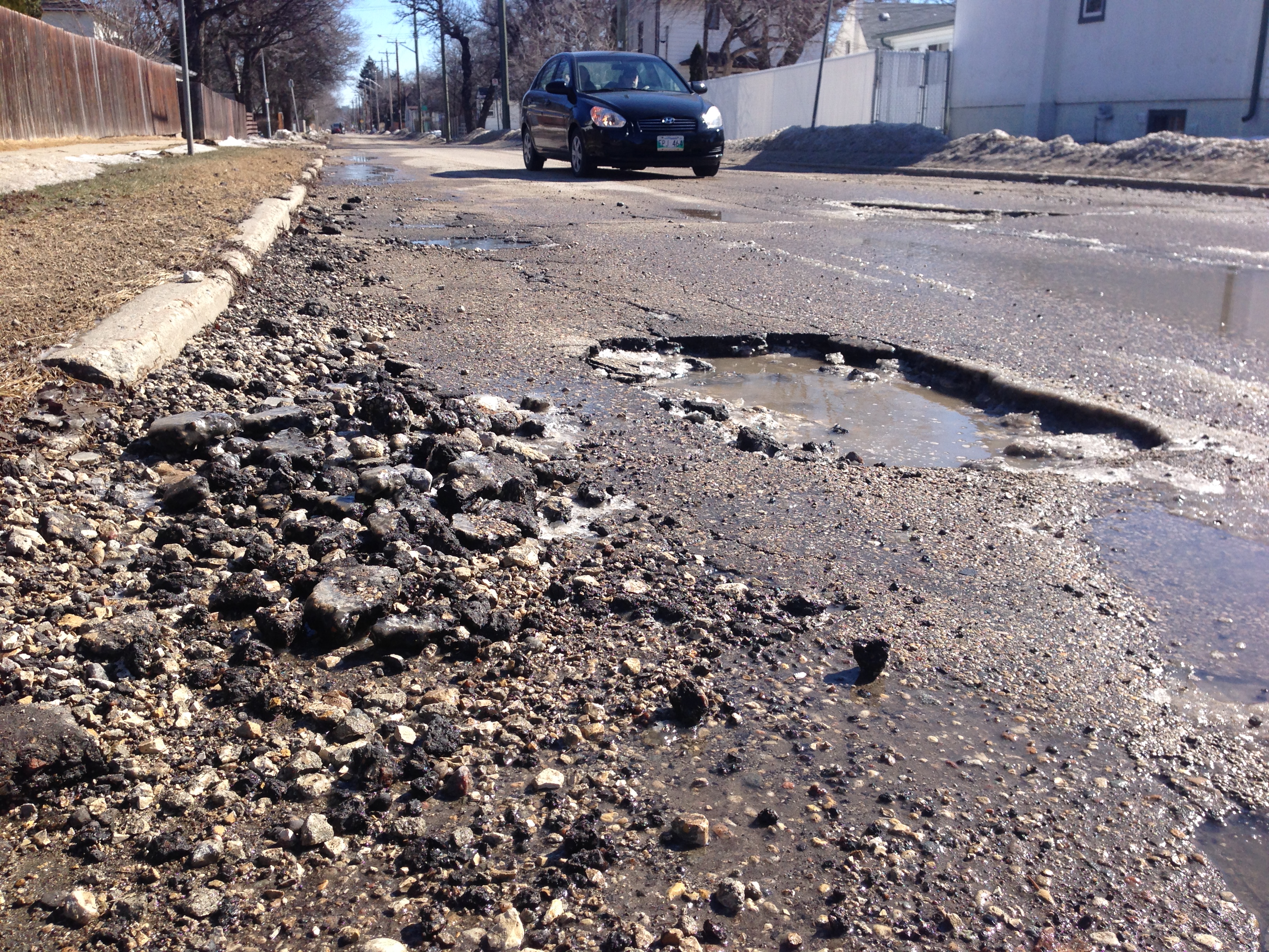 WINNIPEG — Pothole season continues in Winnipeg, and some people driving the roads said the city needs to stop worrying about major routes, and pay more attention to residential streets.