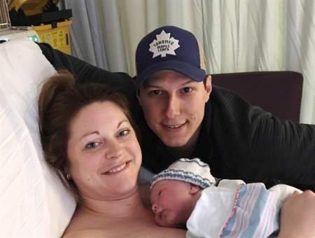 Lindsey Hubley and fiance Mike Sampson pose with their newborn baby Myles Owen Sampson at the IWK Health Centre in Halifax on March 2, 2017 in this handout photo. A Nova Scotia woman who gave birth just three weeks ago has been diagnosed with so-called flesh-eating disease and placed in an induced coma. Relatives of 33-year-old Lindsey Hubley say she delivered her son on March 2 in Halifax following a routine pregnancy, but became sick soon after returning home and was rushed to hospital by ambulance days later.