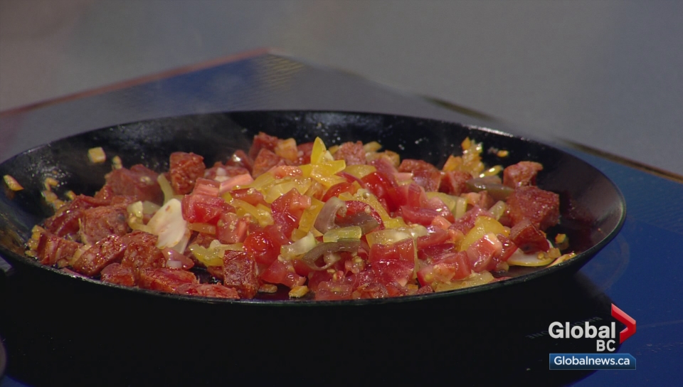 Chef Adam Perrier of Café Medina shares a recipe for halibut with chorizo ragu and charred broccolini