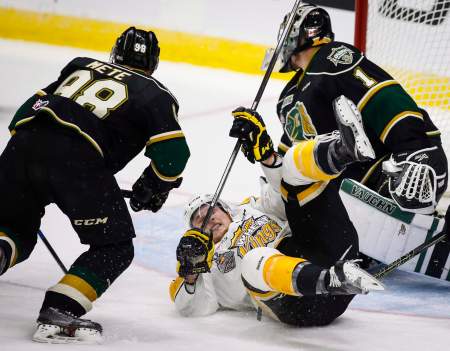 Knights’ assistant coach, Rick Steadman, remembers back to Mete’s first season and a playoff series against the Erie Otters. The Knights’ coaching staff decided to see just what he could do.