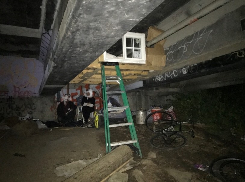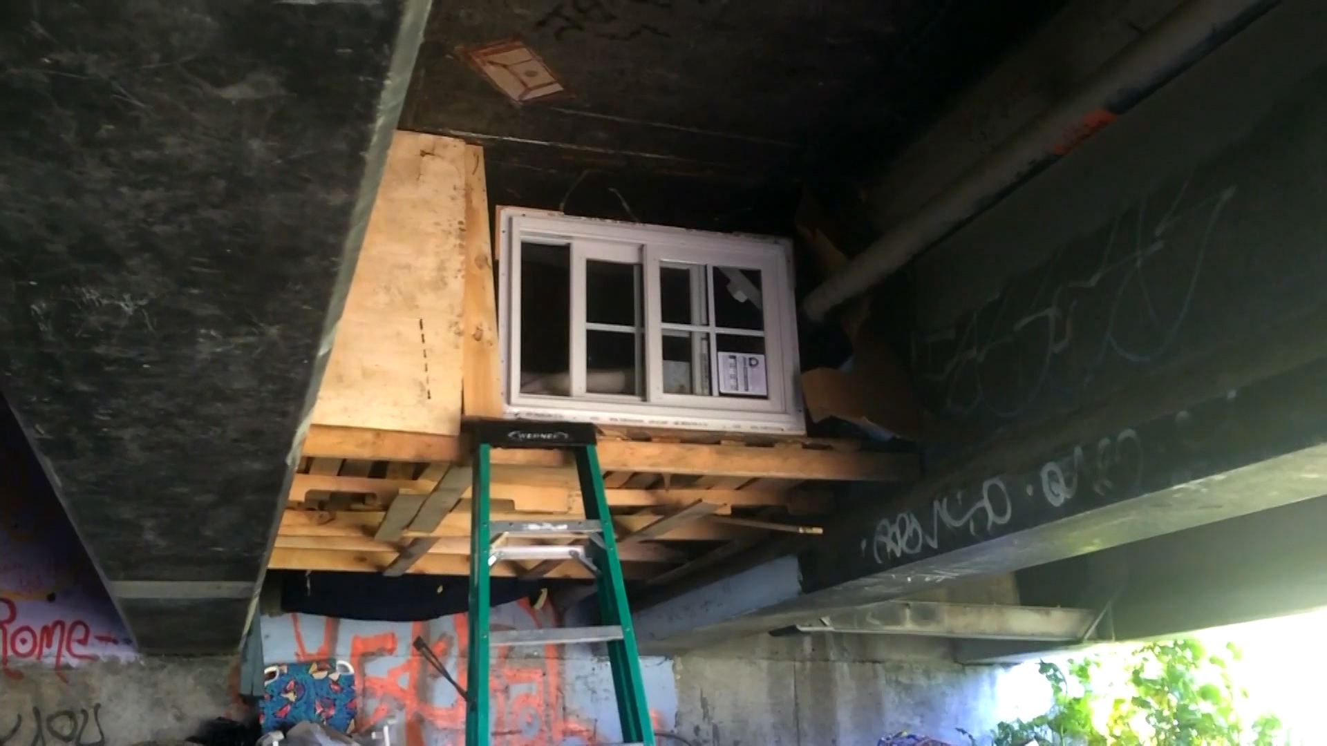 According to local reports, at least two people live in the makeshift apartment. It even has a sliding window to allow light in.