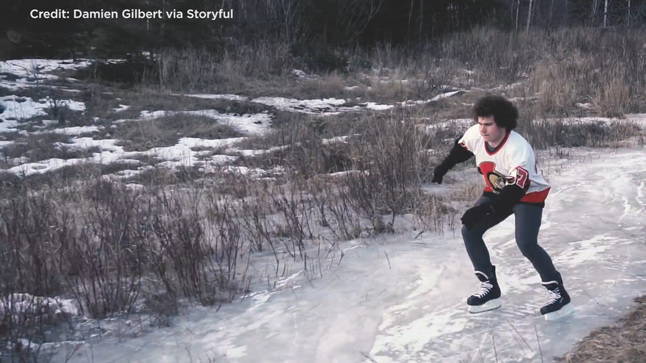 This wasn’t the only road-skating video the friends shot. The deep freeze that hit Thunder Bay froze a ditch off of one of the city’s main roads, on which Gilbert filmed a friend playing hockey.