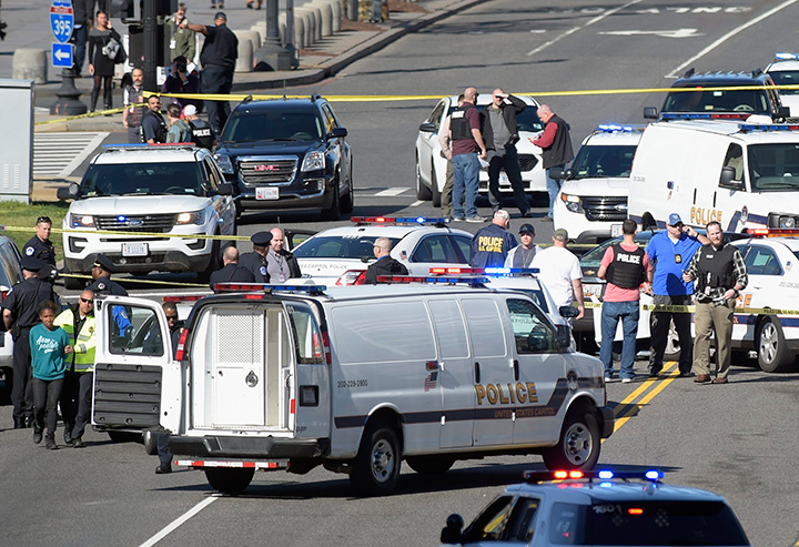 Earlier, a witness said a car was stopped at a checkpoint and police ordered a woman driving a vehicle to stop. The witness, on Capitol Hill to visit lawmakers, declined to permit her name to be used.