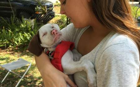 Baxter and her family had just lost their family dog Scarlet to old age and were still dealing with the heartbreak of her death. One night, a week later while browsing Facebook, however, Baxter came across a story about how the Humane Society in Fort Myers was looking to find homes for three blind and deaf puppies that had come in to their possession.