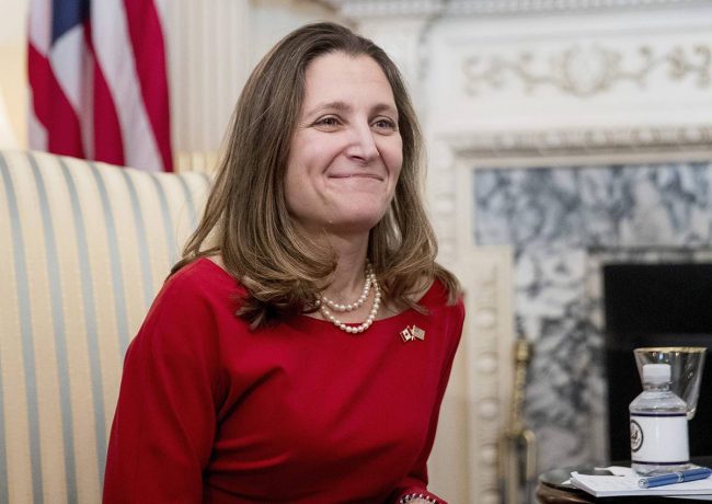 OTTAWA – Foreign Affairs Minister Chrystia Freeland is taking aim a core assumption of Donald Trump‘s upcoming review of American trading partners – she said Friday the U.S. has a trade surplus with Canada, not the other way around.
