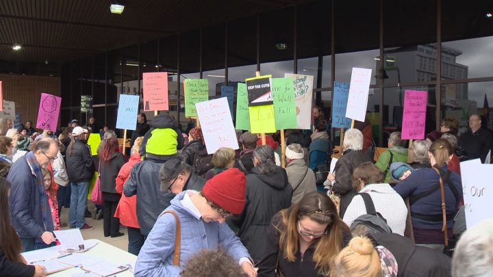 However, many of the roughly 400 protesters Friday contended the service was essential for many across the province. Hanson commented that the bus service cut “hits on so many levels.”