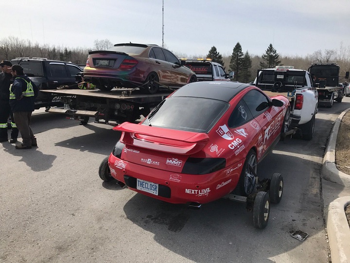 Sgt. Kerry Schmidt said multiple calls came in just after 1 p.m. about vehicles driving erratically and dangerously northbound on Highway 400 in Barrie Sunday.