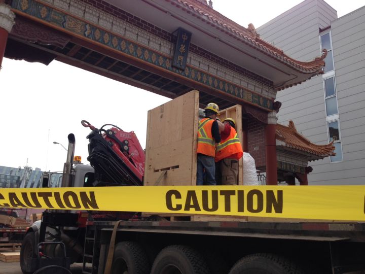 Harbin Gate, the gateway to Chinatown, is being dismantled to make way for construction of the Valley Line LRT.