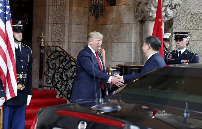 Xi and his wife, Peng Liyuan, drove down a palm-lined driveway past a military honor guard toTrump‘s Spanish-style Mar-a-Lago resort in Palm Beach, Florida, welcomed by Trump and his wife Melania before going inside.