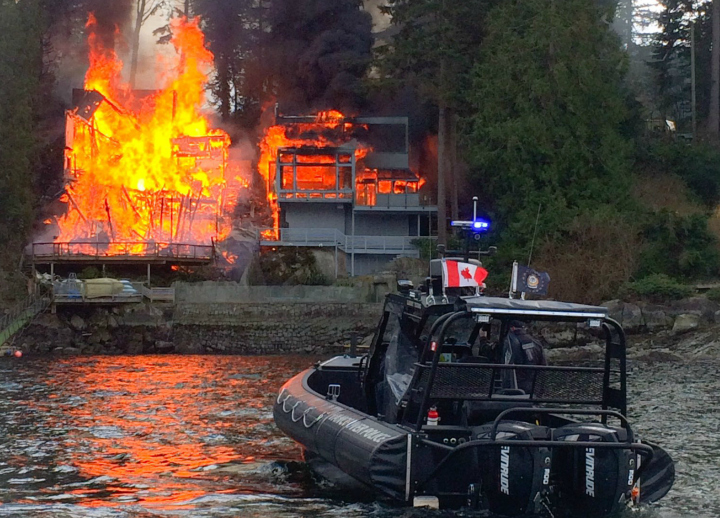 Up to 15 members of the Sasamat Volunteer Fire Department battled the blaze, which consumed two homes near Turtlehead Road.