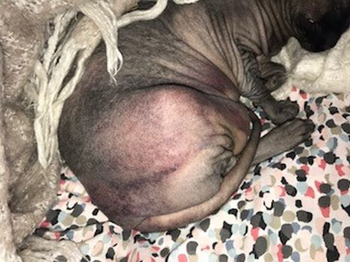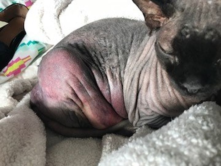 After Giles picked up Gloria, she noticed her cat was behaving unusually, crying and scratching. That night, Giles said she noticed deep pink and purple bruising along Gloria’s bottom and backside.