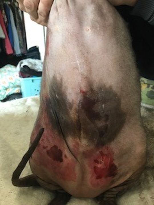 Click through the gallery below: Images of Gloria’s injuries after allegedly being burned at a Calgary animal hospital