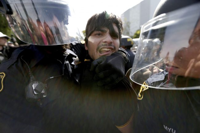 In February, protesters threw rocks, broke windows and set fires outside the University of California, Berkeley’s student union building, where then-Breitbart News editor and provocateur Milo Yiannopoulos was set to speak. His presentation was cancelled.