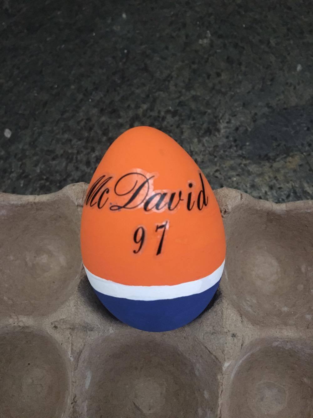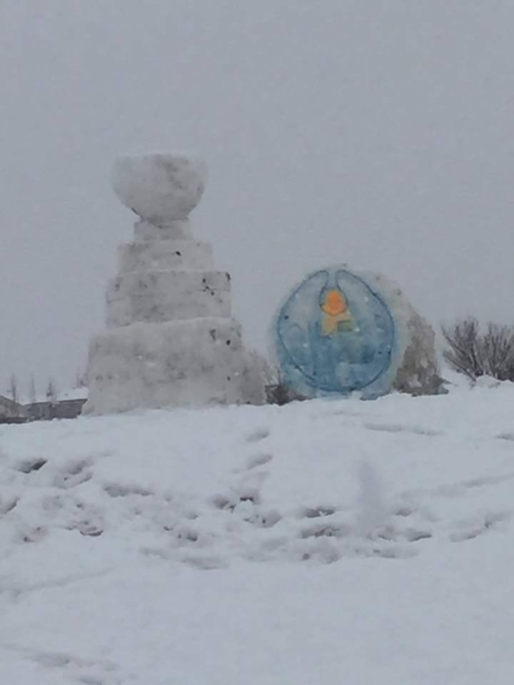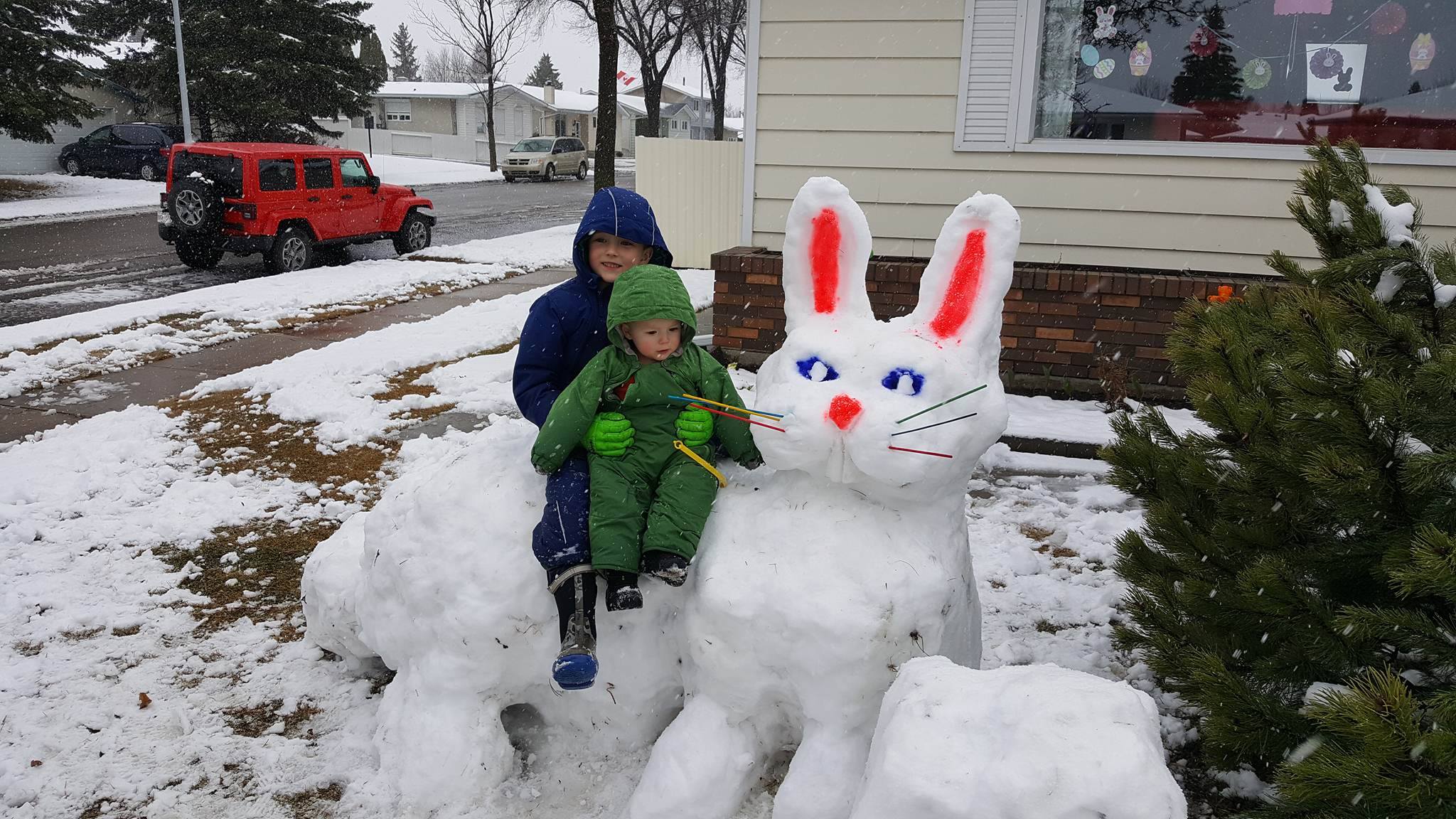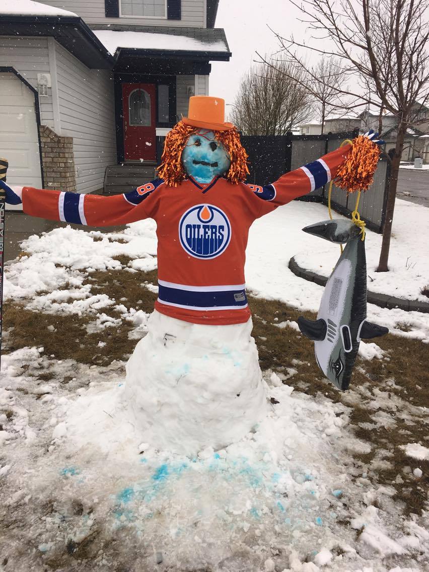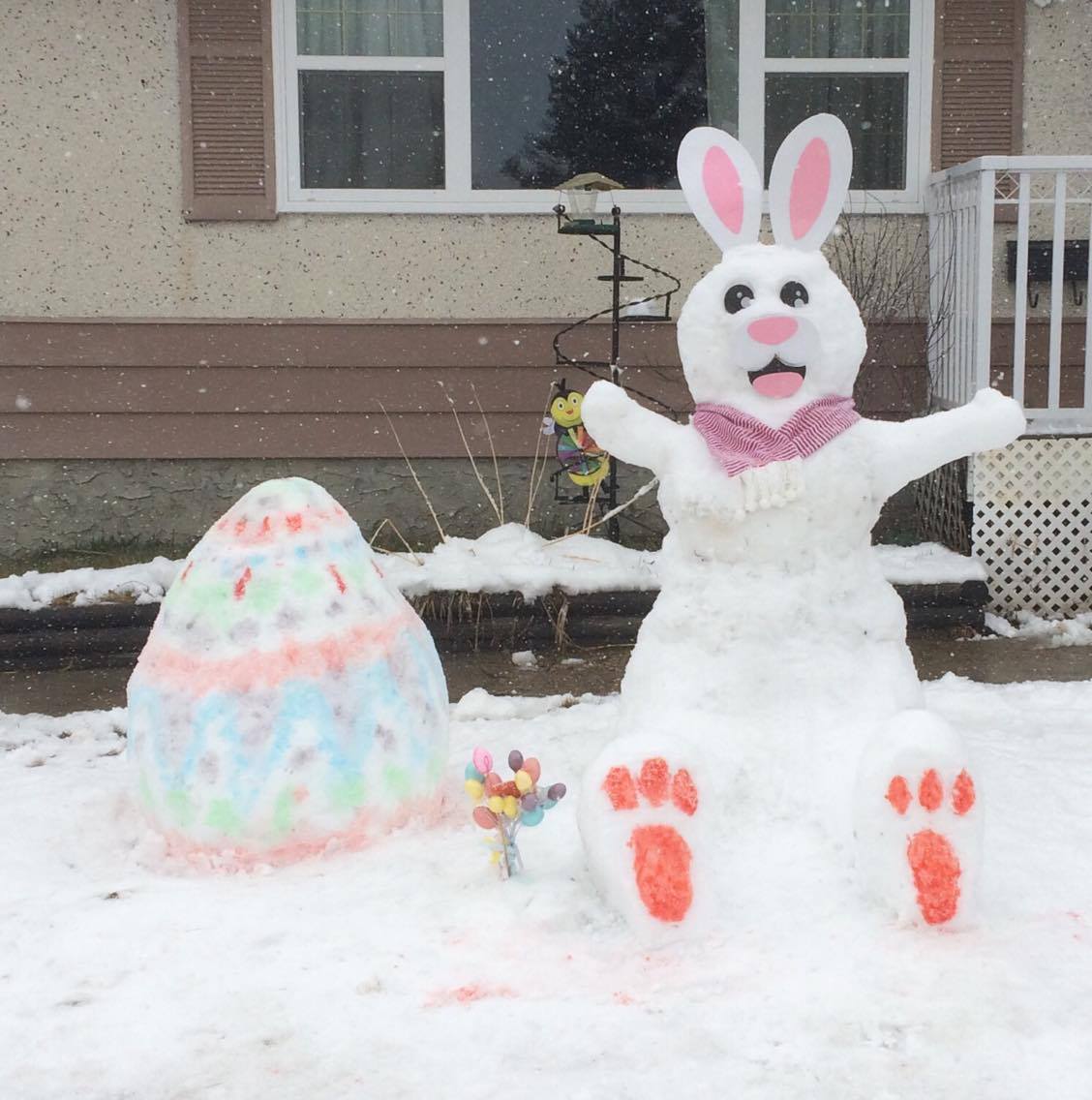 Most decided to head outdoors and play in the snow – and some got very creative, paying homage to the Edmonton Oilers and the Easter bunny.