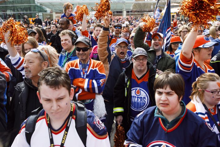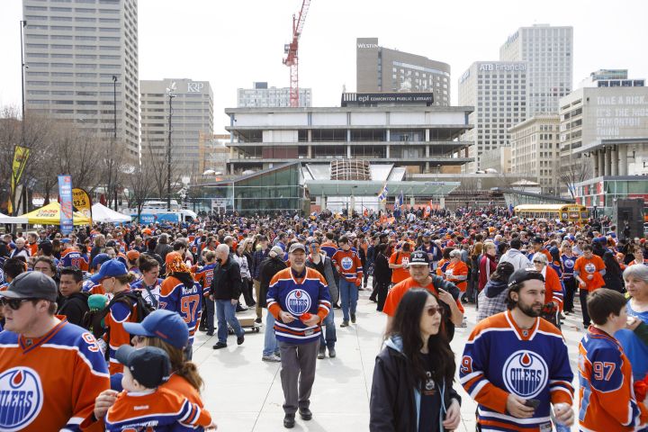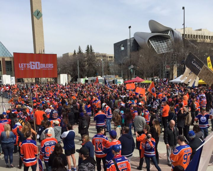 Watch below: Edmonton Oilers fan rally takes over Churchill Square