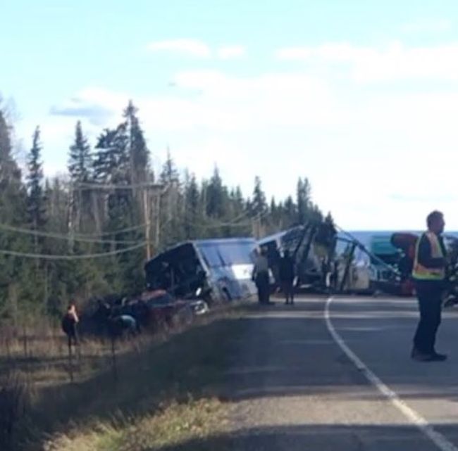 The multi-vehicle accident involving a Greyhound bus occurred on Highway 97 3 km south of Kersley at about 5 p.m. on Friday.