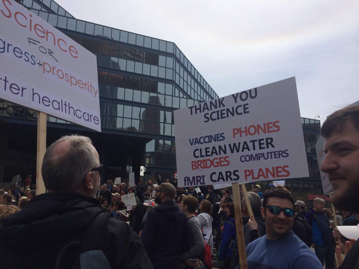 On Saturday, to mark Earth Day, people in almost 500 cities across multiple continents marched in solidarity for the promotion of science. What began as a single rally in Washington, D.C., to protest the attitude against the sciences demonstrated by the current U.S. government grew into an international political statement that included over a dozen Canadian cities.