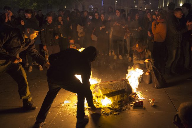 The protest started after the results of the first round in French presidential election were announced.