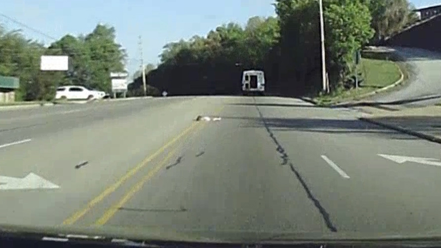 Ryan Ciampoli was driving behind the bus when the back door of the bus swung open and the small girl fell.