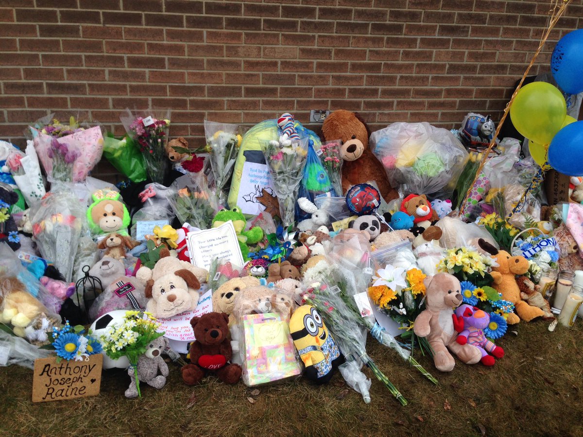 As people came to the church Tuesday evening, they stopped for a few moments of silence behind Good Shepherd Anglican Church, where a memorial has been growing since the body of the 19-month-old boy was discovered on Friday.