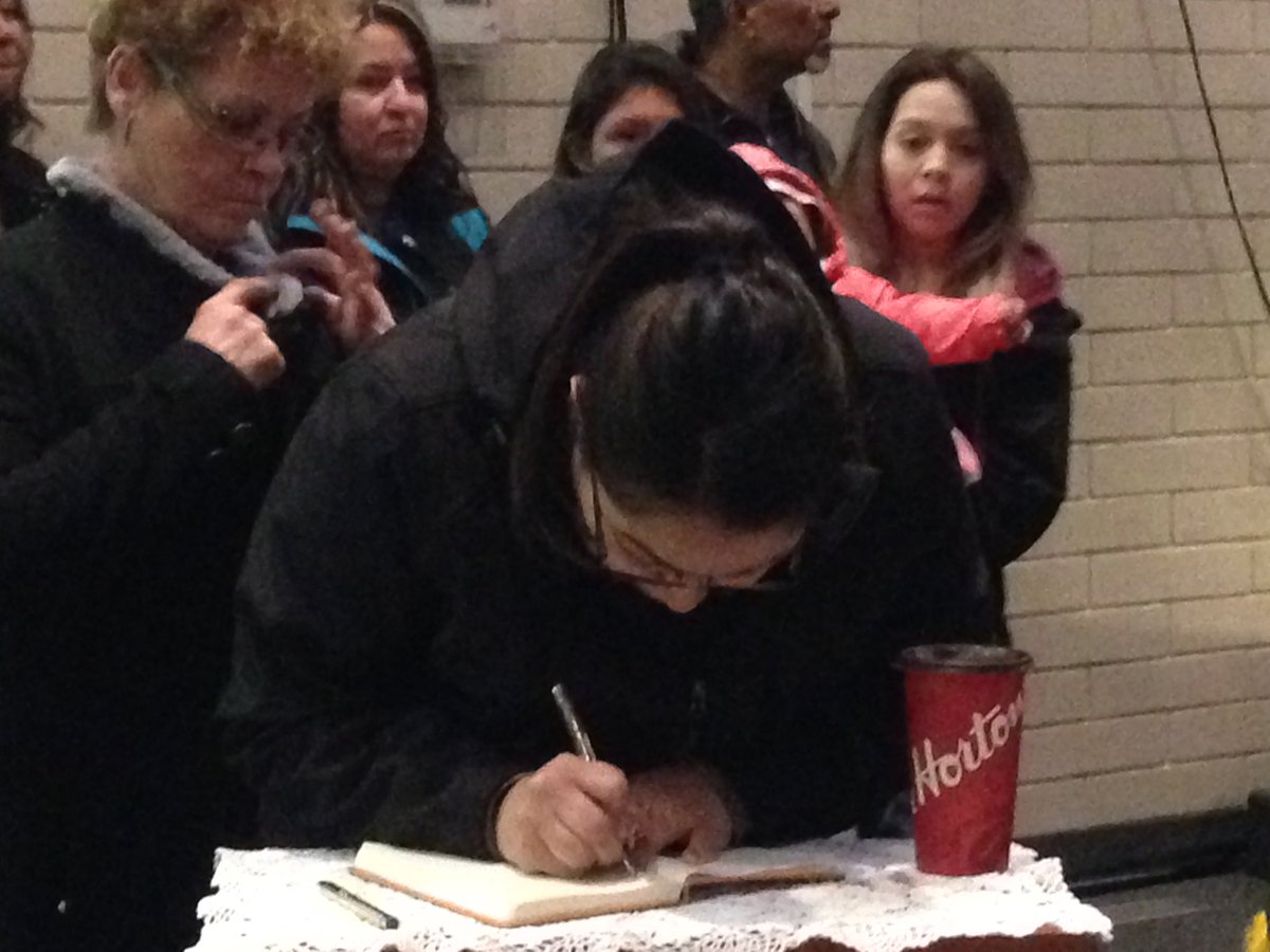 After a brief ceremony in the church, many filtered back out to the memorial, where a group of First Nations singers captivated the crowd with their song.