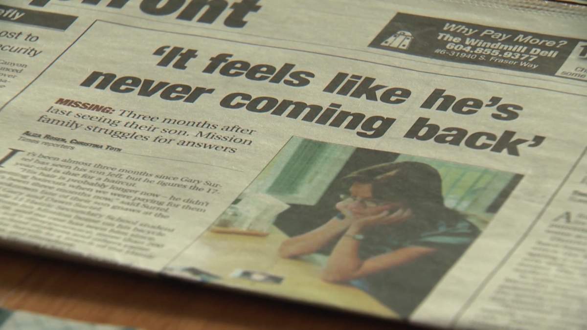 Gary remembers sitting and quietly talking with his teenage son in the front room of their home in Mission the night before he vanished. Jeff had been upset after being grounded from the computer for a week after receiving poor grades on his report card.