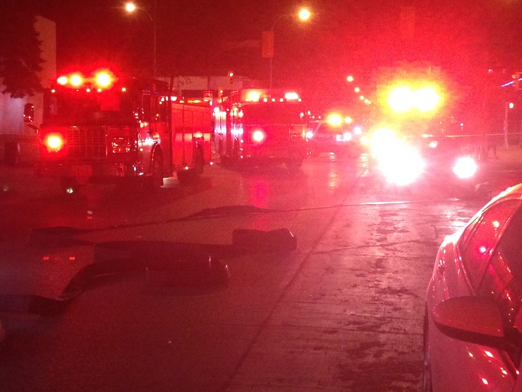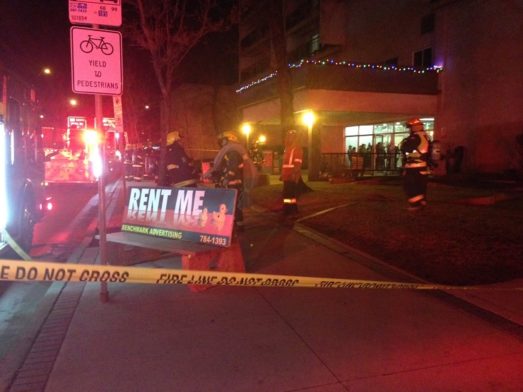 WINNIPEG — Ten emergency vehicles responded to a two alarm fire in an apartment building on Stradbrook Avenue, just east of Donald Street, Tuesday night.