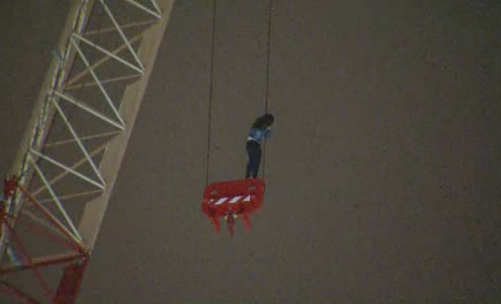 Wonfor, who specializes in high altitude rescues, was sent in to scale the crane boom and rappel down to the woman and managed to reach her around 8 a.m.