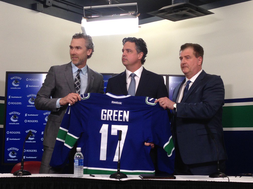 Green was introduced as the 19th head coach in Canucks history Wednesday as he joined team president Trevor Linden and general manager Jim Benning at a press conference at Rogers Arena.