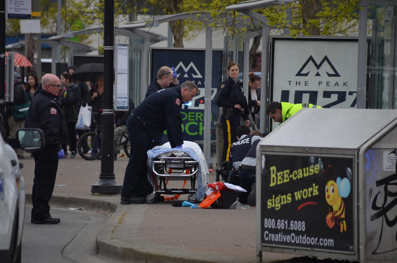 Langley RCMP were called to Logan Avenue bus loop just before 1 p.m. after reports of a man acting erratically with a knife in his hand.