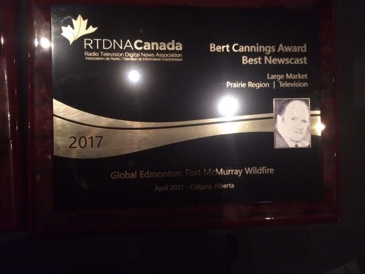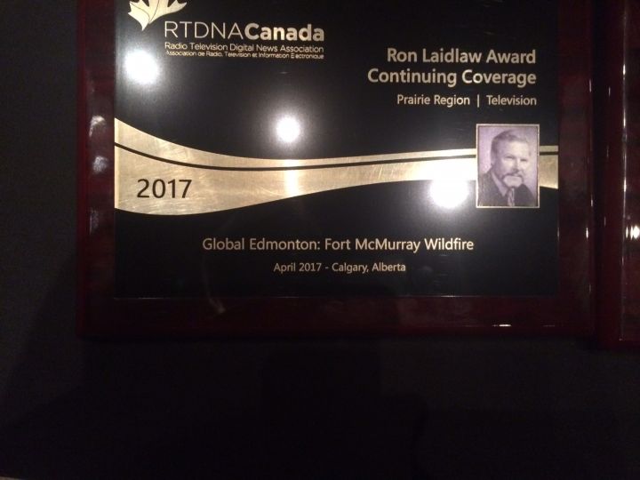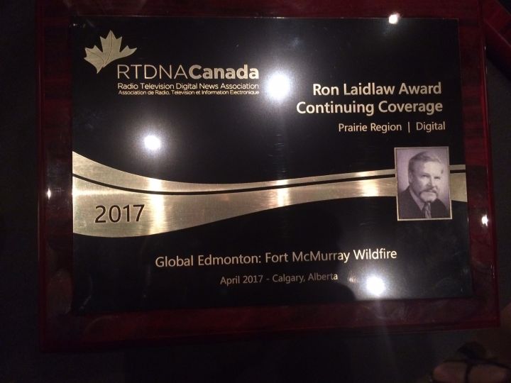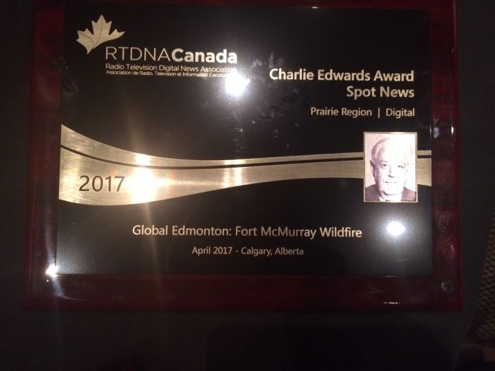 The Charlie Edwards Award and Ron Laidlaw Award were given for Global Edmonton’s online coverage of the Fort McMurray wildfire.
