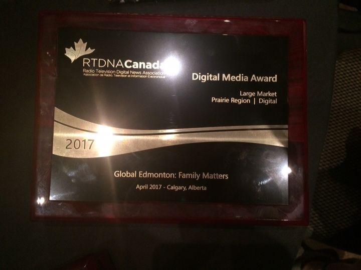 The Digital Media Award was given to Global Edmonton for its Family Matters segment. In 2016, Global Edmonton launched the parenting segment to look at everything from sex ed to screen time and picky eating.