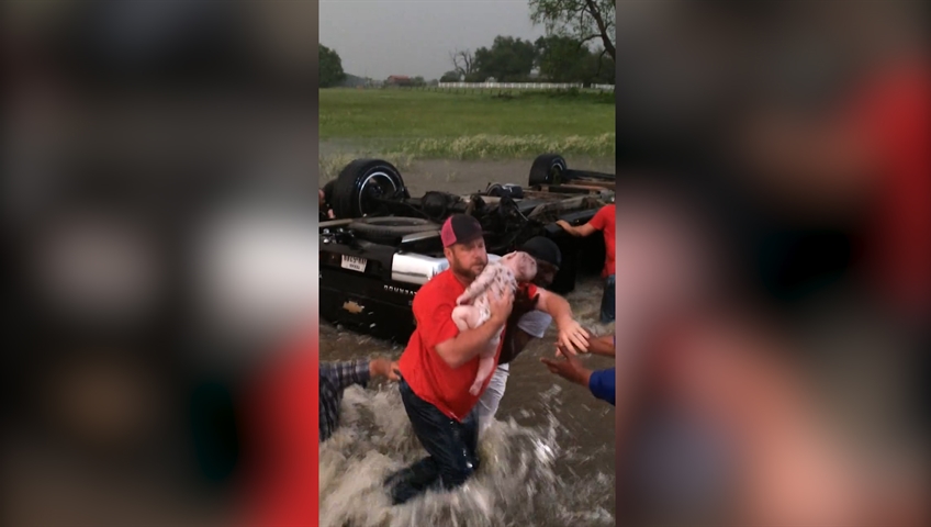 The dramatic rescue occurred last Saturday near Canton, Texas as much of the southern United States battled powerful storms front that brought floods, tornadoes, and even a blizzard in parts of Kansas.