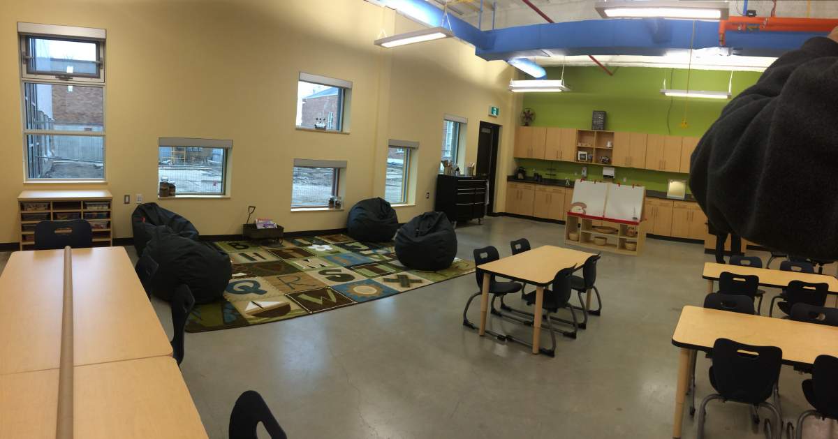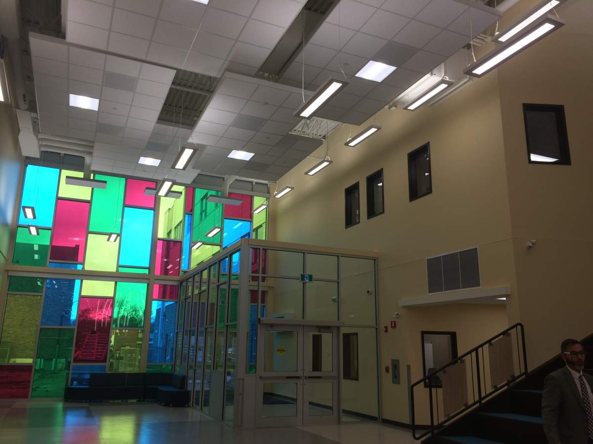 The running theme throughout the school is open concept including high ceilings with colourful panes of glass and natural light.