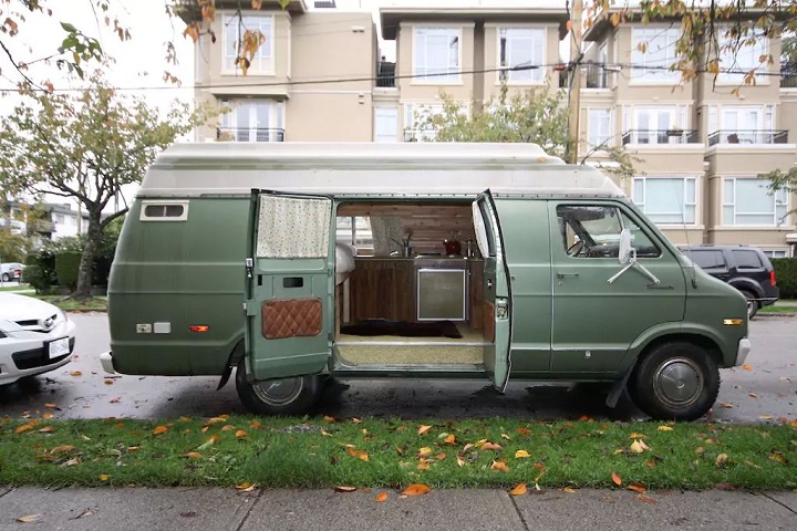 Aptly-named The Pickle, it’s parked on a quiet tree-lined street near the beach in Kitsilano and according to the online ad, is freshly renovated with cedar walls, recess lighting, curtains, a brand new foam mattress, propane heat and refrigerator.