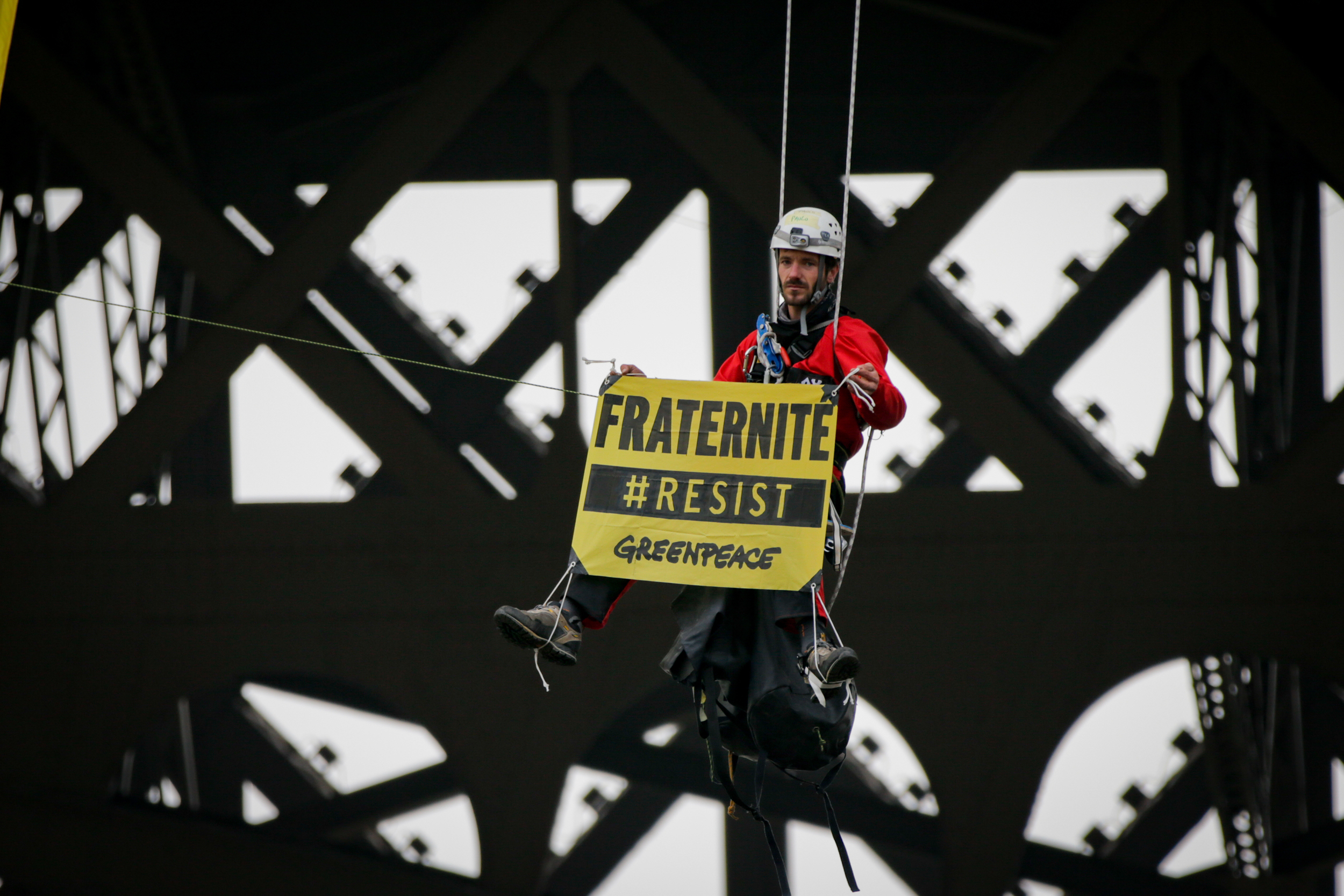 “Greenpeace is an independent and apolitical organization. But we can’t remain silent while the National Front party might come to power. This action at the Eiffel tower this morning was a wake-up call. We don’t want this party to hijack the universal values of the French republic’s motto, imprisoning them behind closed borders or refusing their application to all,” Julliard continued.
