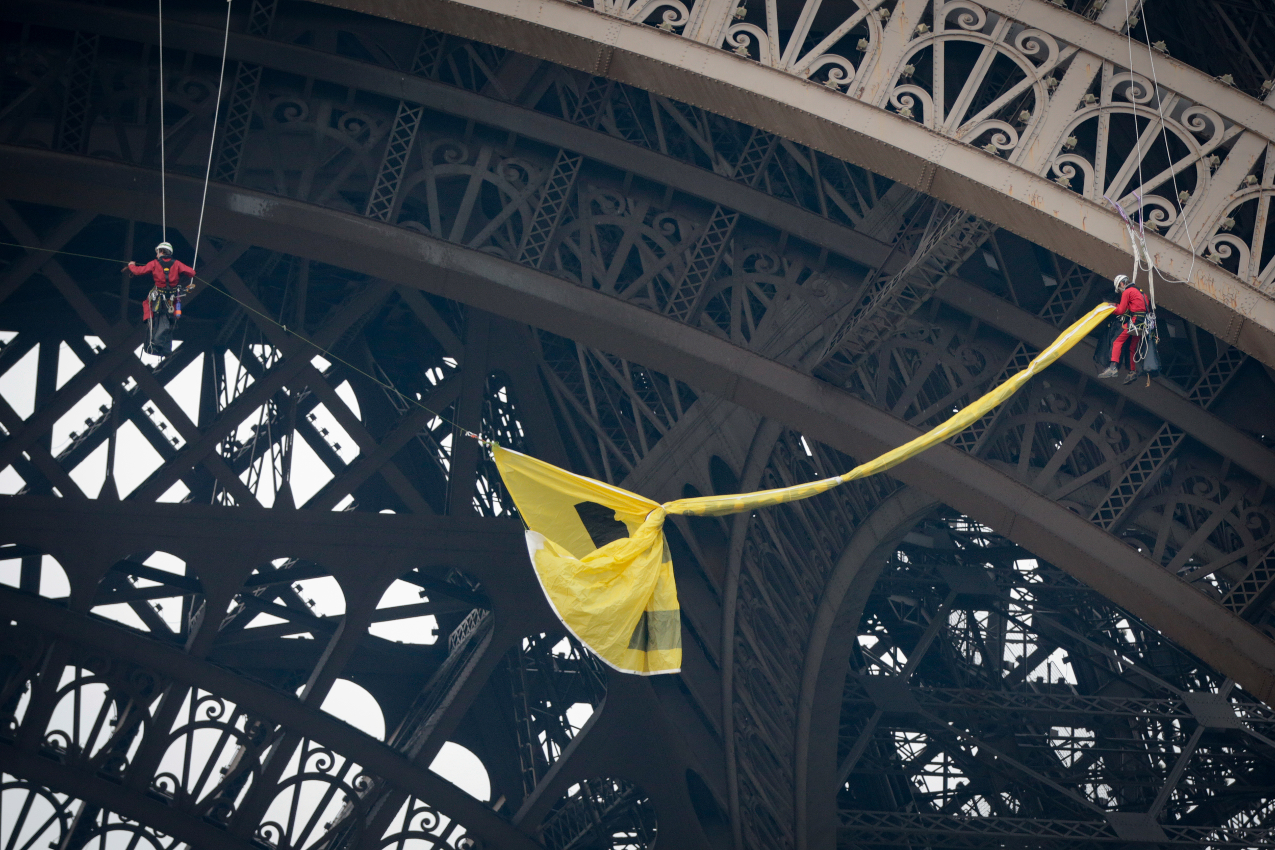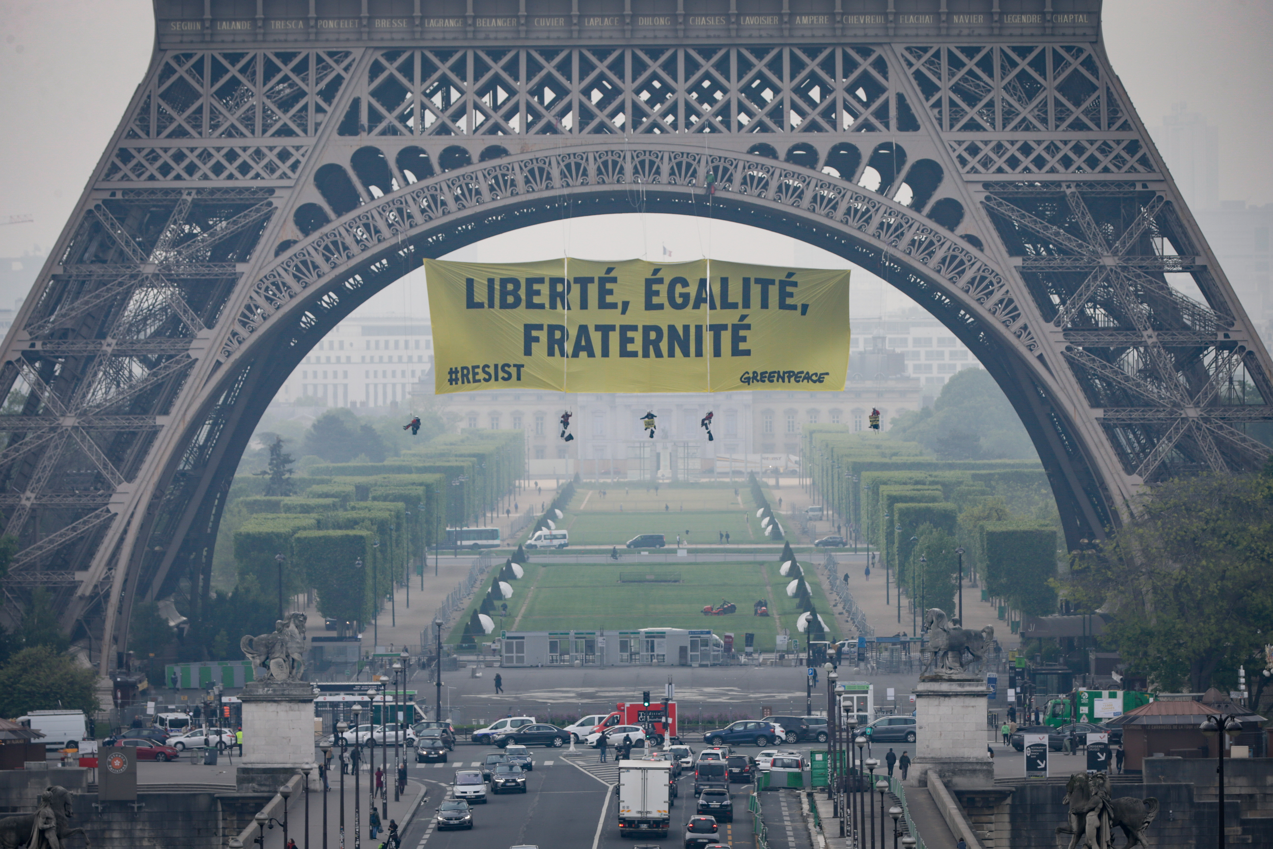 Ahead of the presidential election taking place in France on Sunday, 12 Greenpeace activists scaled the side of the Eiffel tower with a message.