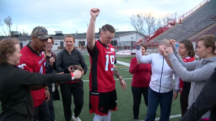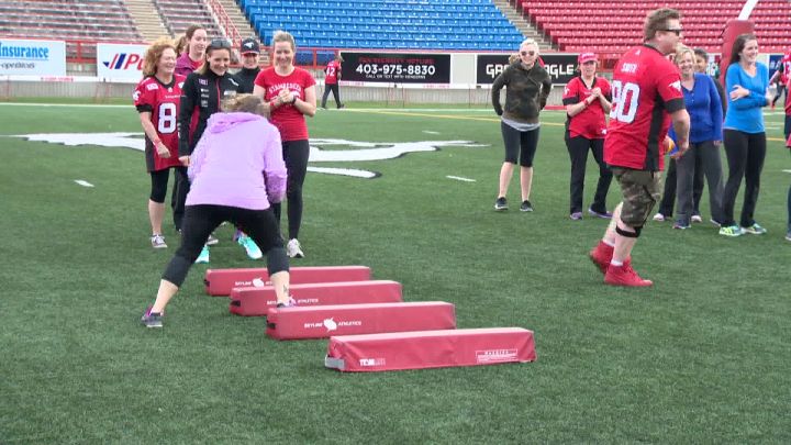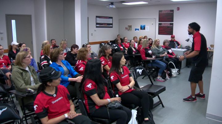 Women were invited to attend one of two evening sessions Wednesday and Thursday to learn the basic concepts of CFL football at McMahon stadium directly from the pros themselves.