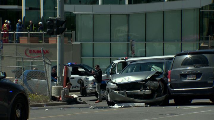 Police said the stolen sedan was reported to them about one hour before the collision. It’s believed it was taken from an auto body shop in the 5900 block of Macleod Trail S.E.