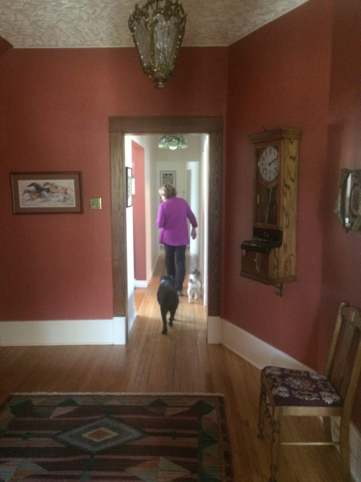 Currently, there are five women in the seven-bedroom house, ranging in age from 50 to 70. There are even three dogs.