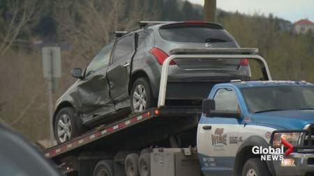 The vehicle eventually collided with another vehicle after running through a red light at Shaganappi Trail and Bowness Road NW at about 1 p.m. The driver of the other vehicle sustained minor injuries in the crash.
