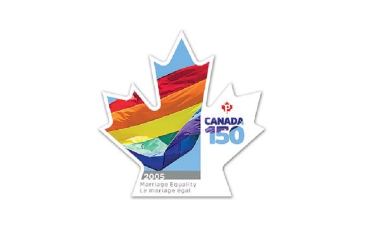 TORONTO – The latest Canada Post stamp commemorating Canada’s 150th birthday pays tribute to the fact that same-sex couples have the right to get married in this country.