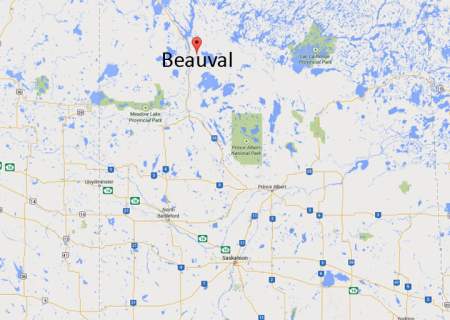 Beauval is approximately 340 kilometres north of Saskatoon.