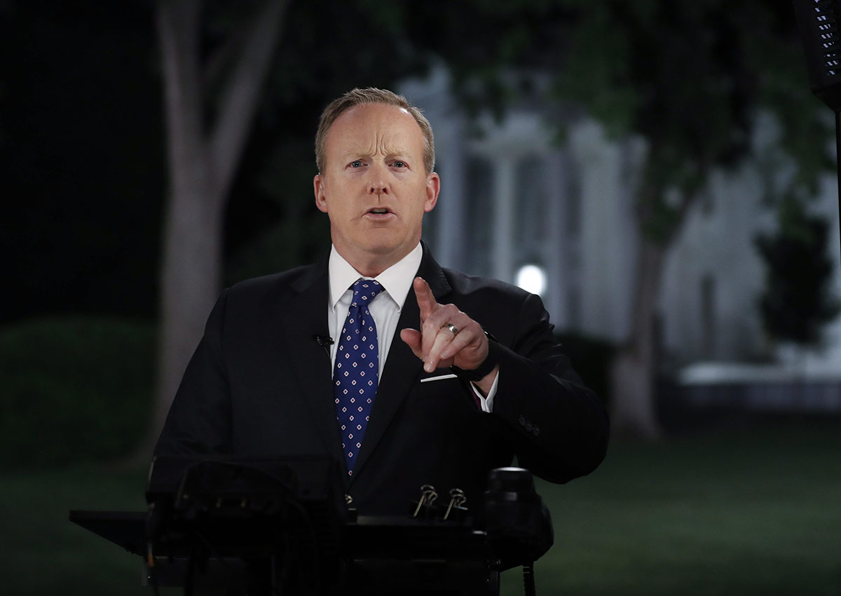 After Spicer conducted a TV interview on a set on the White House grounds, he reportedly wanted to return to his office but the path to his desk was blocked by reporters seeking answers over the bombshell announcement about the FBI director’s dismissal.