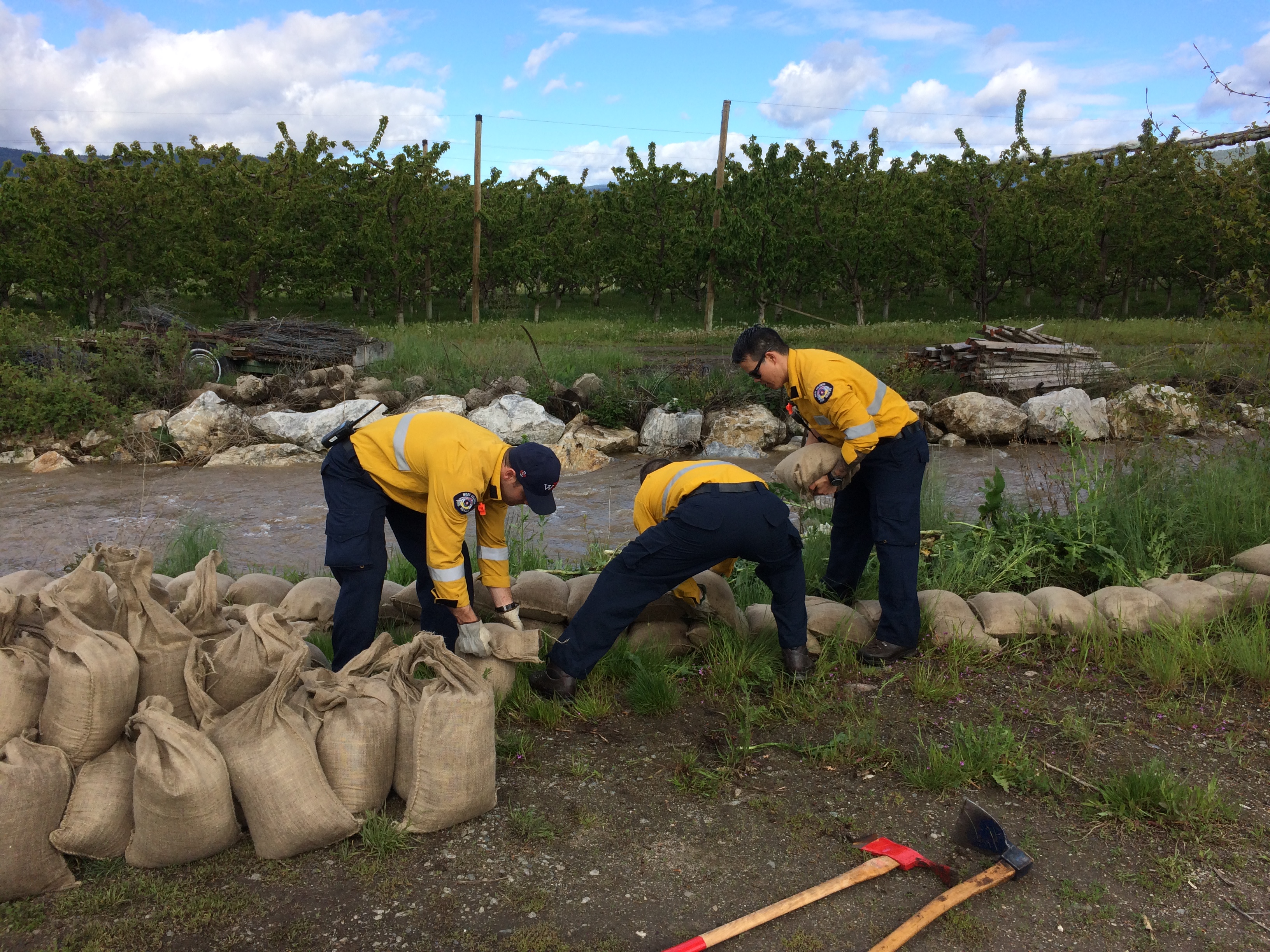 Sandbagging is still underway throughout parts of West Kelowna, including along McDougall Creek in the Hitchner Road area, which is notorious for flooding.