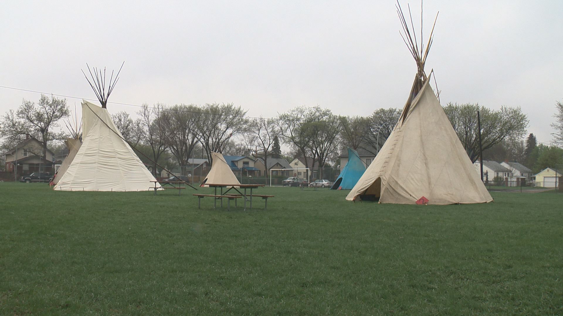 The field outside Edmonton’s Parkdale School has been transformed into an indigenous cultural camp this weekend.