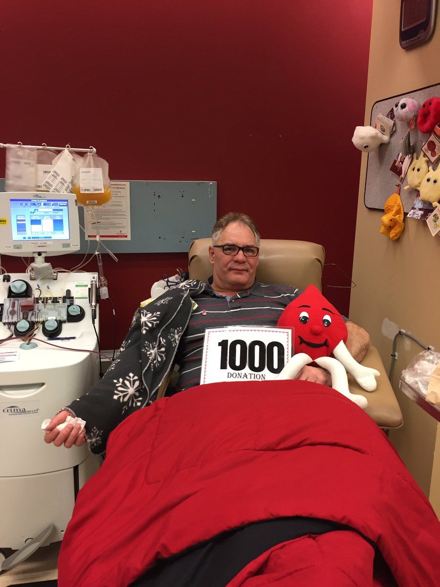 In February, the 57-year-old donated for the 1,000th time, joining an illustrious club.