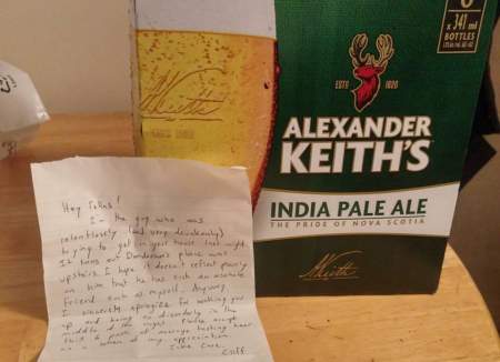 An attempted break-in at a Halifax apartment resulted in an unexpected apology and a unique example of Nova Scotia kindness after a six-pack of Alexander Keith’s arrived on her doorstep.